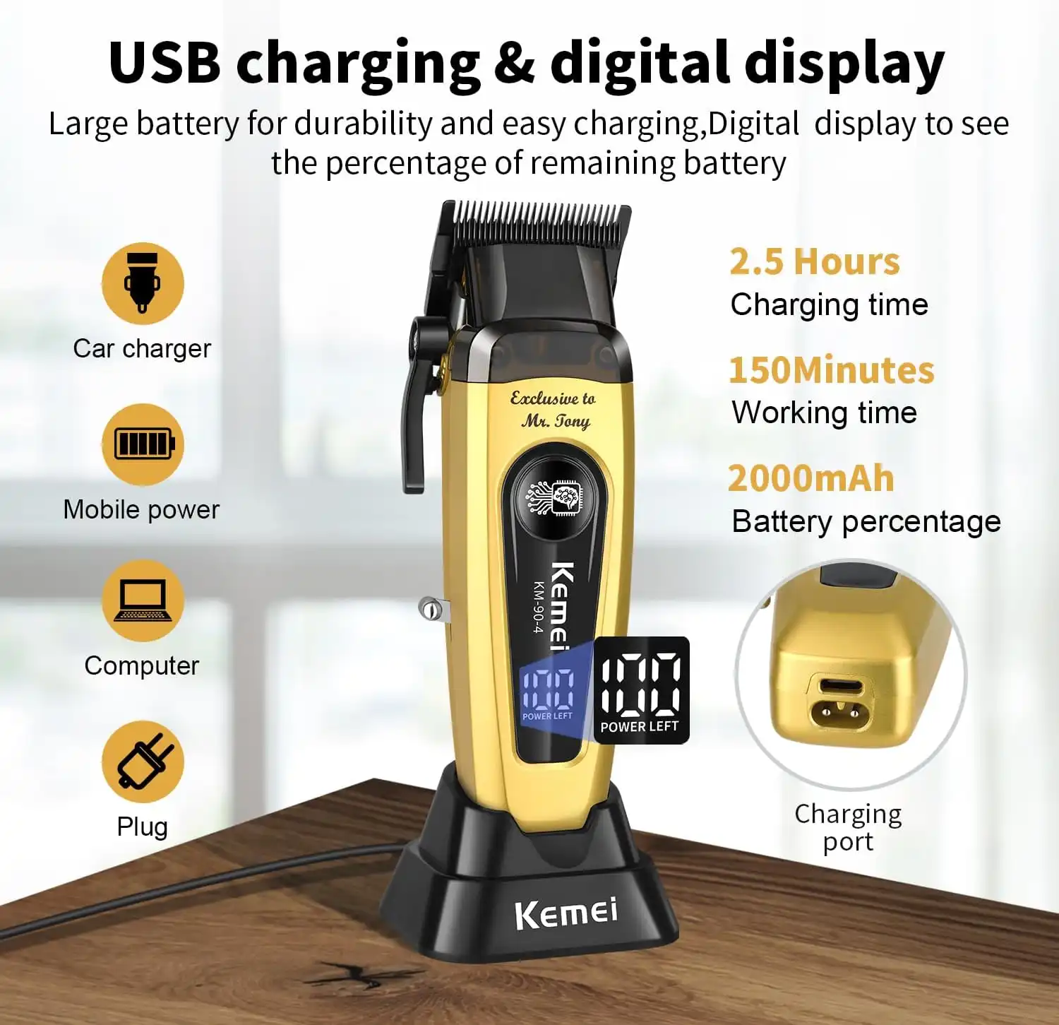نقد و بررسی اجمالی KEMEI KM-90-4 Adjustable Hair Clippers Electric Trimmer Rechargeable Trimmer Beard Shaving Machine Hair Clippers Trimmer For Men